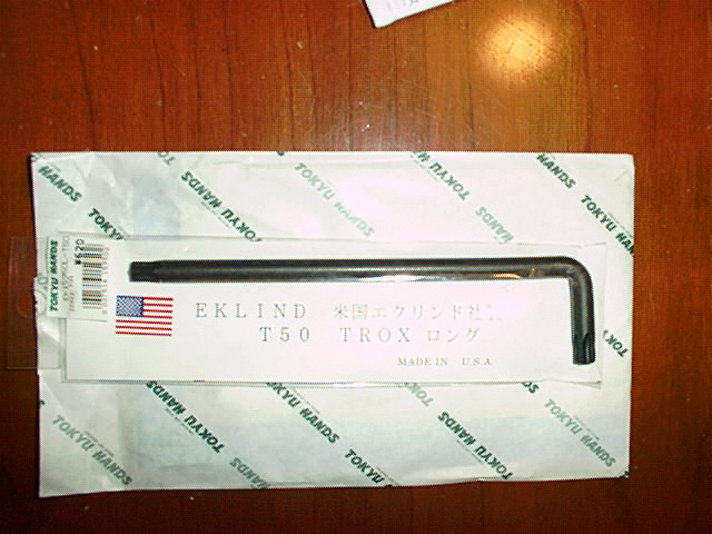 結局自宅近くのお店には T-50 は入らず、挙げ句の果てに「メーカーにもない」そうで、そのお店は諦めた。 ステアリング購入以来、二週間近く何軒かホームセンターのような所を探し回ってみたのだが、やっぱり T-40 までが限度で、 T-50などという巨大なサイズはどこにも売っていない。いつものタカさんのところの掲示板で、ドライバータイプよりラチェットの ビットを探した方がいいとの情報を得、ビットを探すもののやはりそんな巨大なものは見付からなかった...。