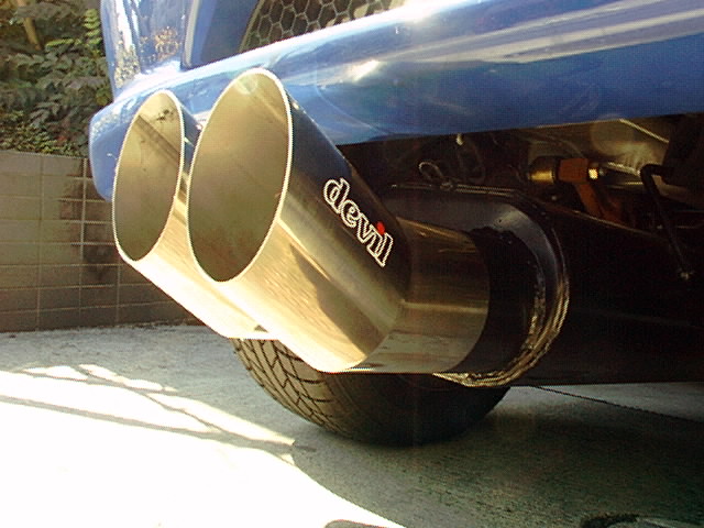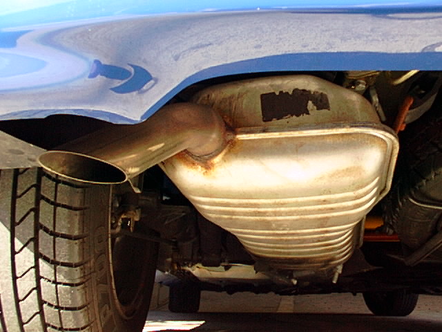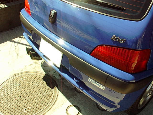 ノーマルのマフラーはこんな感じです。まぁヨーロッパ車としてはありがちな、覗き込まなければわからない下向きのマフラーですが、ノーマルのままでも意外にいい音はしていると思います。